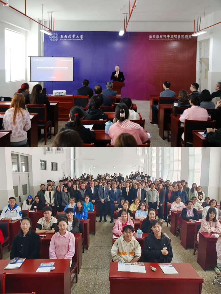 王卫斌表示,学校历来重视国际交流与合作,与法国高校和科研院所取得丰硕的合作成果。设有科技部认定的“国家生物质材料国际联合研究中心”,与法国洛林大学、法国农业科学研究院有良好合作;学校开设法语本科专业已14年,培养毕业生400余名。期待与法方在生态环境保护、研究生联合培养、生态种植、有机农业及森林康养等方面与法方开展新的合作项目。杜官本院士期待双方在现有合作基础上,继续加深了解,扩大合作领域,加强人才培养力度,通过我们的努力,让中法友谊更加长久。