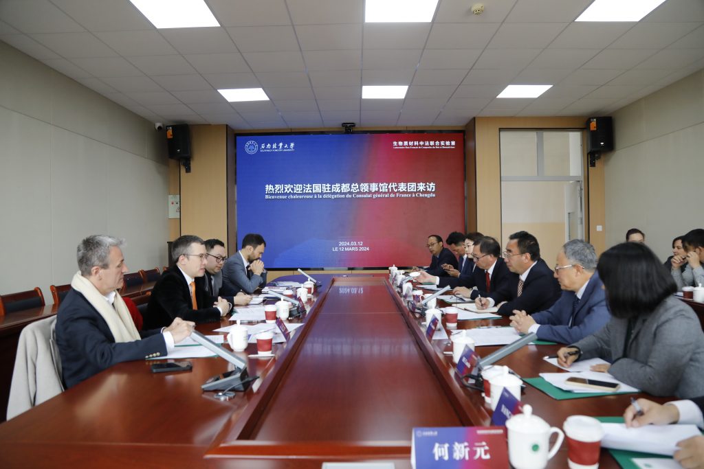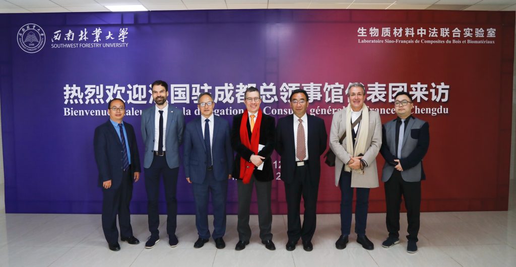 3月12日上午,法国驻成都总领事馆总领事戴宁智(Guillaume DELVALLÉE)、总领事馆科技与教育合作专员李森明(Samuel LIEGEOIS)、国际自然与森林医学协会法国分会主席岚士义(Alain Lancelot)等一行到校访问。西南林业大学校长王卫斌、中国工程院院士杜官本、相关职能部门及学院负责人与来宾进行了座谈交流。