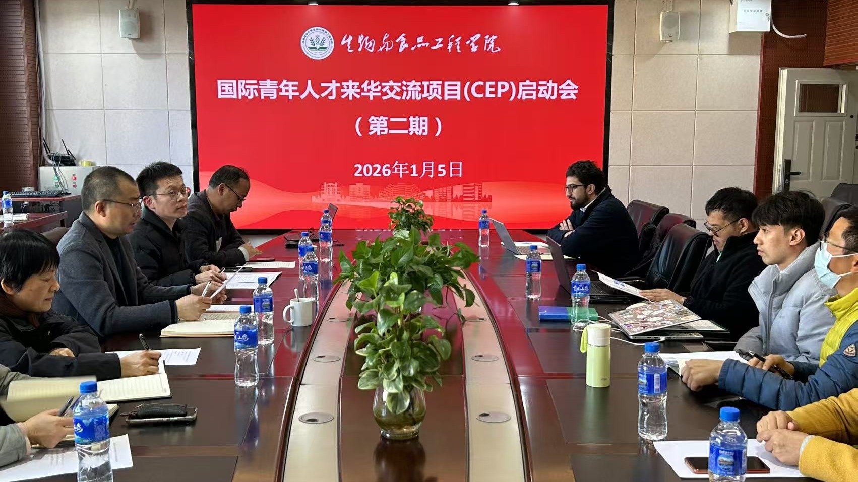 1月5日,学校举行首批国际青年人才来华交流项目(China Exchange Program for Young International,简称CEP)启动会议。会议由生物与食品工程学院院长罗旭主持,对外合作交流处副处长王海涛、材料与化学工程学院副院长周晓剑、项目三位外籍博士生以及师生代表参加会议。